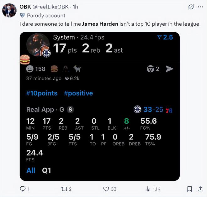末节费城疯狂追分一波35-21完成反超,哈登连续三次出手都未能命中,他太累了,最关键的一次挑战,费城挑战成功,哈登关键抢断马克西桑德斯两罚全中,泰伦卢挑战邓恩没犯规成功,哈登两次三分绝杀都没中(第一次疑似被犯规没吹)。哈登37分钟,25中7,三分12中2拿28分6篮板5助攻1抢断2盖帽。